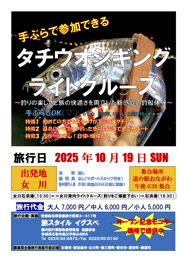 手ぶらで参加できる 【タチウオジギングライトクルーズ】